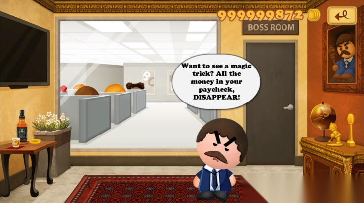1、下载进入暴打老板III,即刻开启“报仇”之旅,拖动老板摔撞墙壁,或是从菜单挑选玩具,开启首次发泄攻击。