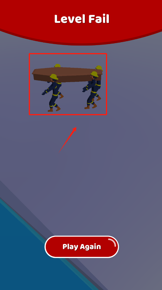 3、点击再玩一次按钮重新挑战,失败后会有四人抬着物体离开场景。