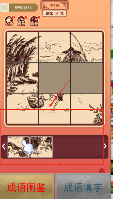 2、拖动拼图块补全古风垂钓图,用步数或道具完成15步挑战。