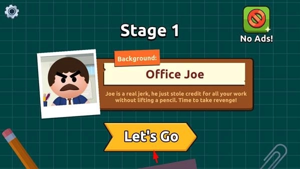 1、启动暴打老板V,点击“let's go”开始挑战,从多样的武器库中选择第一件道具,准备对老板发起攻击。