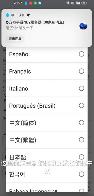 6、现在终于看得懂了吧!选择中文(简体)/中文(繁体),点一下就跳出来了,然后系统自己会改!