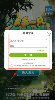 3、填手机号或用户名密码登录,没账号就注册,勾选协议再进游戏。