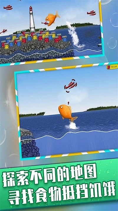 1、控制灵活的小鱼在海底世界穿梭,寻找并吞噬比自己体积小的鱼类以快速成长。