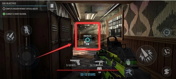 3、拾取枪械后我们需要按照指引去消灭前方敌人。