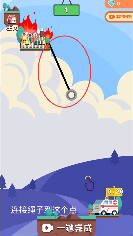 2、用手指画出救援绳索,连接起点和终点。绳索长度有限,需要精打细算。角度和松紧度影响下滑速度。