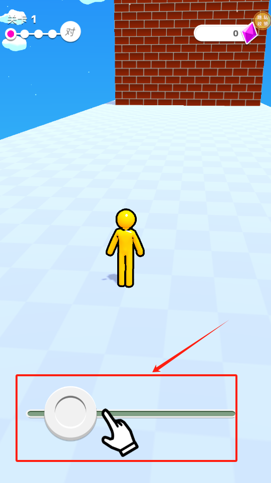 1、点击带圆盘的滑块,拖动手形图标移动,让黄小人站到蓝白格子地指定位置。