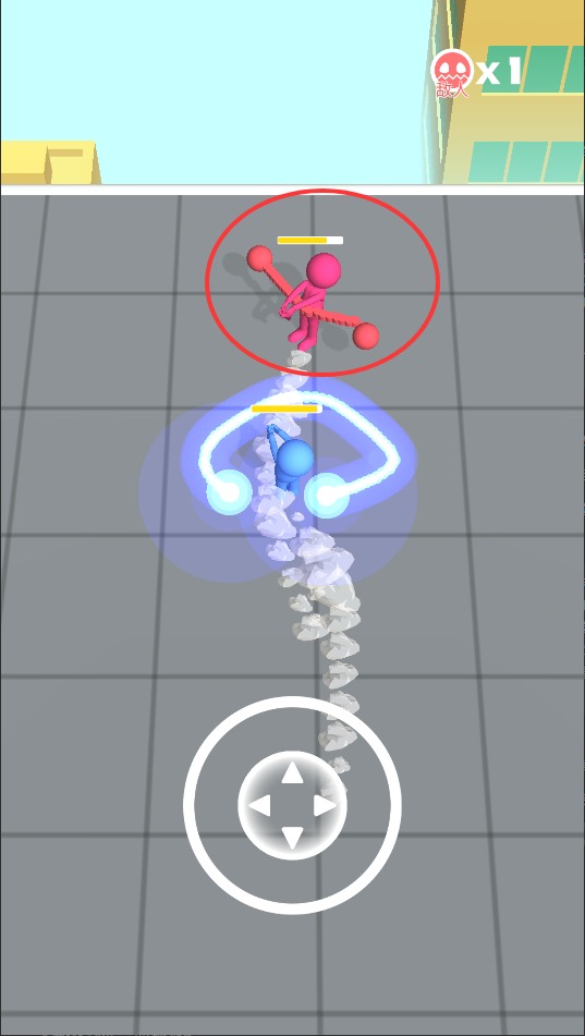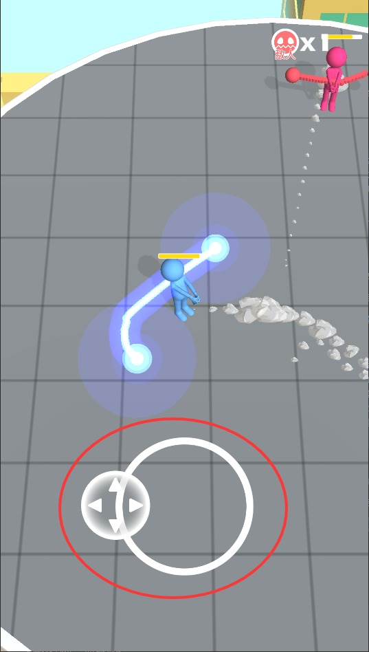 2、通过在界面上左右滑动手指,可以灵活操控火柴人角色进行移动,同时要注意避开障碍物并向敌人靠近,占据有利位置后发起攻击。