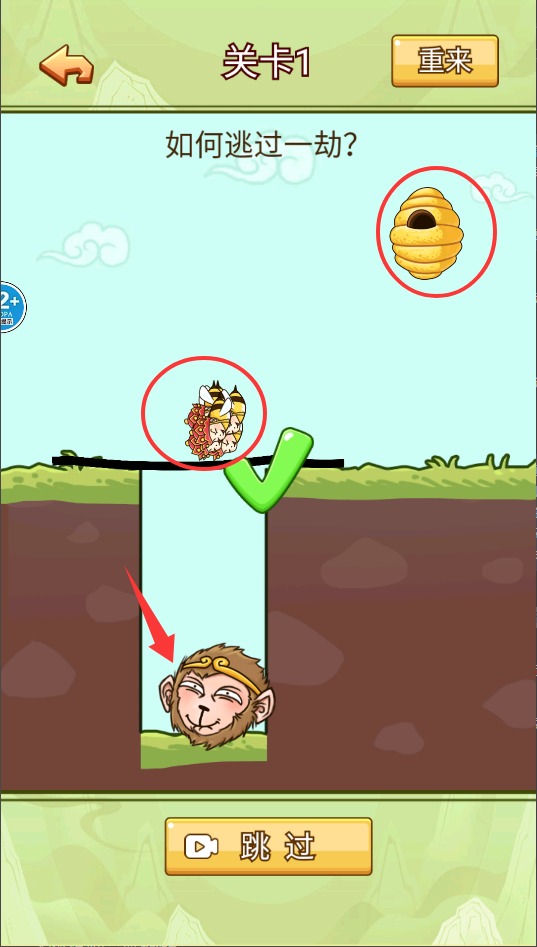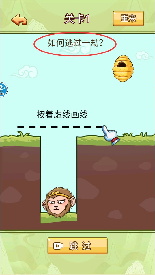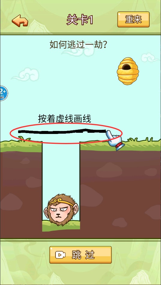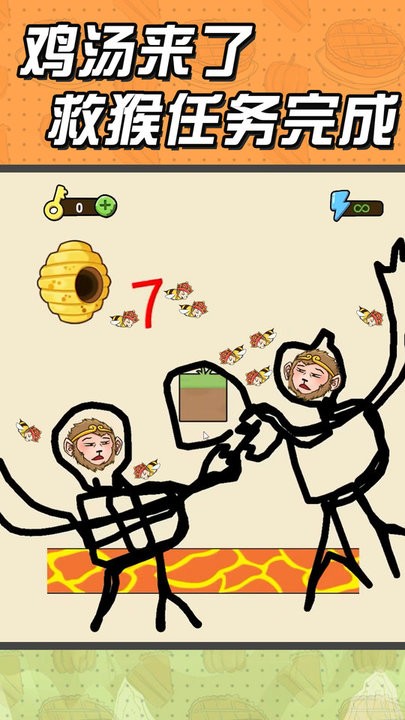 3、要特别警惕空中飞舞的蜜蜂,若它们突破防线接触到猴子就会失败,必须及时补画防御线直至倒计时结束通关。