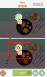 2、用手指比较两张餐盘图片,找出边缘处的绿色光圈差异位置。