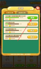 2、进入任务页面,完成诸如“累计提升宠物等级20次”之类的日常任务后,点击“领取”以获得金币奖励。