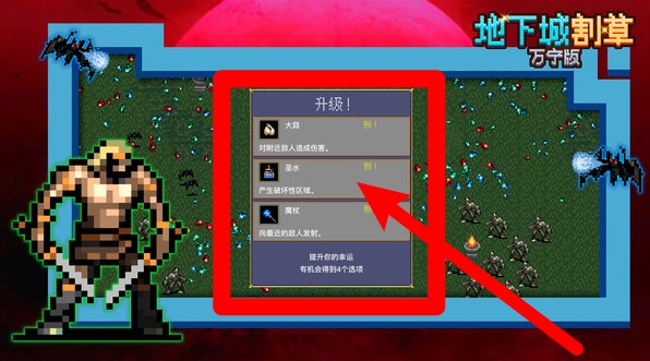 3. 击败敌人后会掉落金币和宝箱,迅速收集这些资源来强化装备,从而提高生存能力和割草效率。