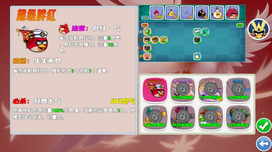 1在每场比赛中,你都会随机得到一只具有不同等级和技能组合的鸟,这将为你的游戏体验增添更多乐趣。