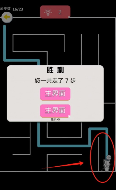 1、点击开始游戏,火柴人被困迷宫,画条路线帮它逃出去。