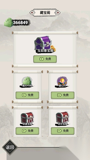 5、重生宝物系统:游戏结束后可获得宝物奖励,强化下一次重开人生的开局。