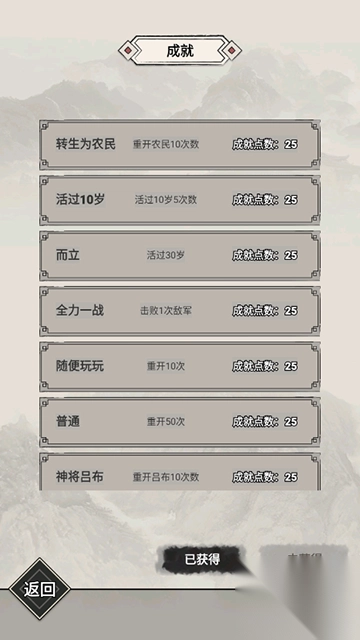 《吕布重生模拟器》是一款以三国名将吕布为主角的文字剧情类重启模拟游戏。在游戏中,玩家可以通过选择不同的故事线、自由分配属性点数、挑选坐骑和宝物,开启一段属于自己的吕布重生之旅。该游戏采用了创新的随机事件系统和成长机制,为玩家提供了丰富多彩且变化多端的剧情体验。无论是权谋斗争还是情感邂逅,从战场上的点兵布阵到隐居田园的生活,每一次的选择都会引导你走向一个截然不同的结局。对于喜爱三国题材以及人生重启类型文字游戏的玩家来说,这款游戏绝对值得尝试!