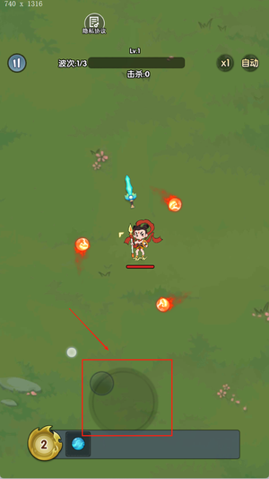 1进入游戏后,挑选你的角色和初始武器。通过点击屏幕来控制移动方向,滑动屏幕可以调整攻击的角度,并释放自动旋转攻击。
