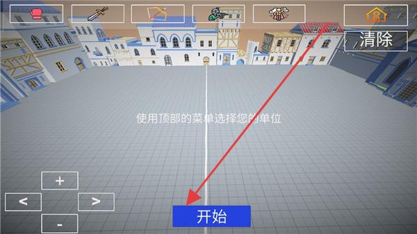 3、组“兵种阵容”!点顶部菜单,选农民+弓箭手,1排对称放置,每配好1组,战力+15,点“开始”,观战斗效果,超重要。
