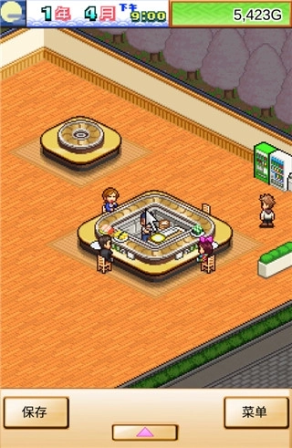 3、进入游戏之后,大家就能看到开罗游戏风满满的那种像素画风了,看起来是不是很有新奇感呢?当然,需要在这里提醒大家的是,小编自己的海鲜寿司物语目前的存档为28年9月,游戏中的各种摆设和布局,在新手阶段都是没有的。如果您是第一次玩的话,刚进入游戏,只会有一些最简单的设施。