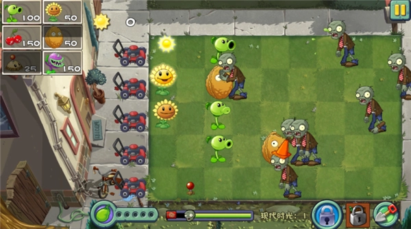 3、玩家操控植物,抵挡僵尸来袭,守护这片植物园。