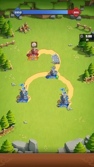 3、不断制造士兵并为他们配备武器参与战斗,游戏中有大量的城池等待玩家征服,同时还可以建造防御塔、解锁新的兵种和道具。