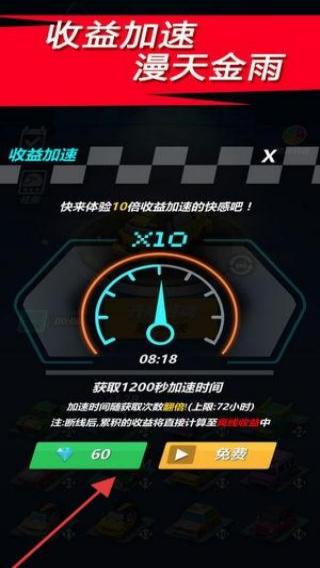 2、想收益加速可选择【60】或【免费】方式激活X10加速在限时内拿更多金币。