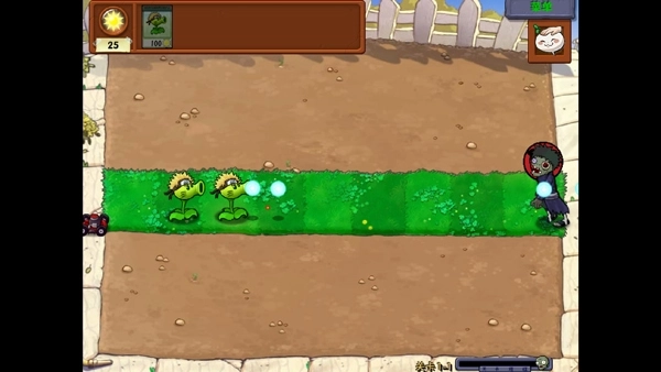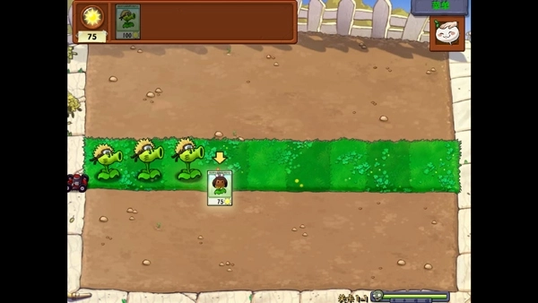 1、进入游戏以后,优先种植向日葵,然后在出现僵尸的路径可以先在后面放置豌豆射手。(没有敌人的路线不放)
