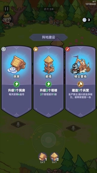 1《全境守卫》以策略塔防为核心,玩家在每回合中围绕主城进行操作。通过升级主城可以解锁更高级的防御设施,如远程箭塔和出兵兵营等。根据敌人的特性和行进路线,合理安排防线布局,游戏中的策略性非常丰富。