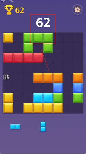 2、点击并拖动方块将其放置在合适的位置,当三个及以上相同颜色的方块连在一起时即可自动消除获得积分。