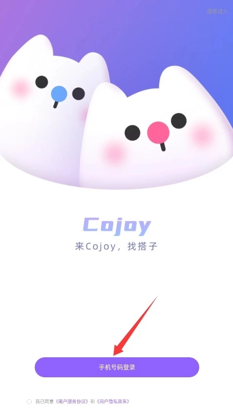 1、首次使用Cojoy需勾选同意用户协议,通过手机号验证码完成登录流程,进入应用主界面。