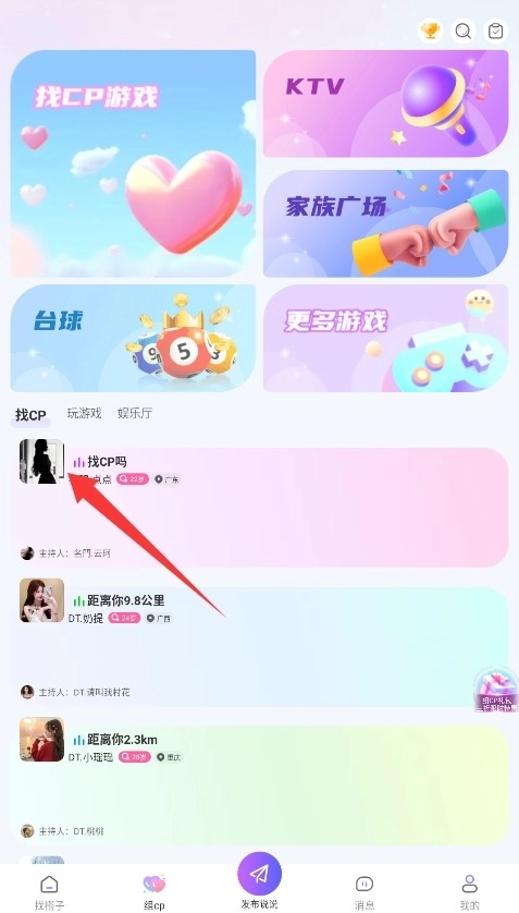 2、在首页选择"组CP"功能模块,浏览推荐用户列表并点击感兴趣的头像查看个人主页详情。