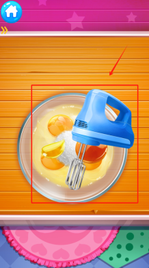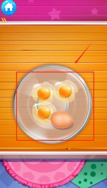 2、看木桌上蛋黄蛋壳和鸡蛋,按红箭头提示操作这里准备材料。