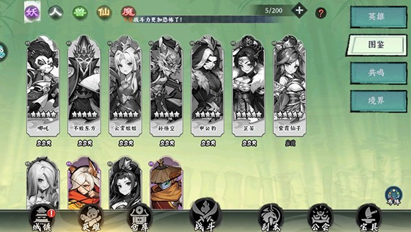 2、英雄体系涵盖妖、人、兽、仙、魔五大种族,各自具备独特属性与战斗机制。
