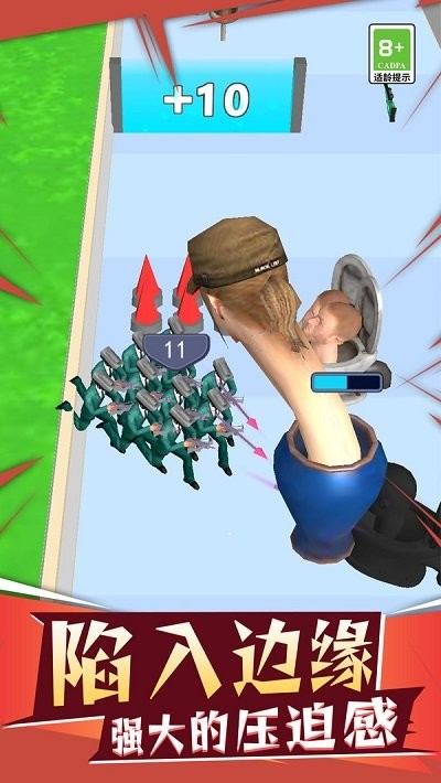 2、阶段性BOSS设计:每五关出现巨型马桶人首领,需特定弱点机制才能完成击杀。
