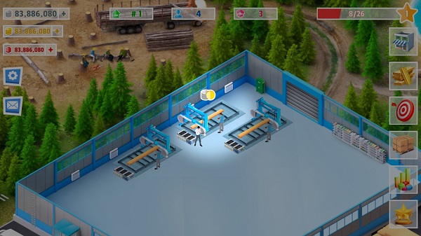 建造一个大型木材厂并不断扩大规模,购买设备,雇用员工,开始生产。谨慎运营,实现生产流程自动化,直到建立一个属于你的木材帝国!