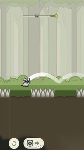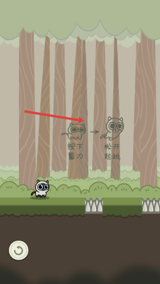 2、操控跳跃:长按屏幕蓄力,松开使小猫起跳,跨越尖刺障碍。