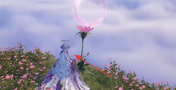 3、花海场景,角色与巨型花卉、泡泡互动,呈现观光玩法景观节点。