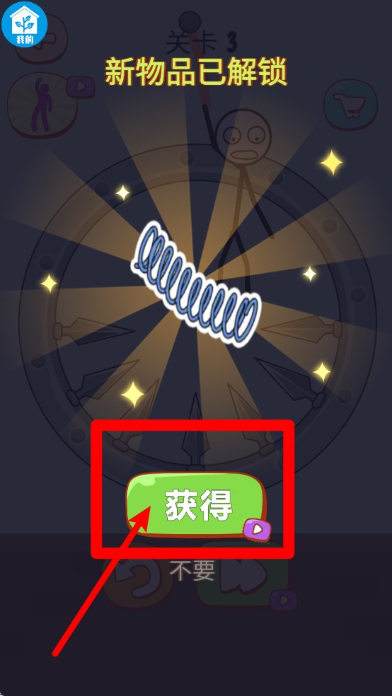 1. 成功解锁新道具弹簧后,点击“获得”按钮即可马上领取,并可在接下来的挑战关卡中使用。