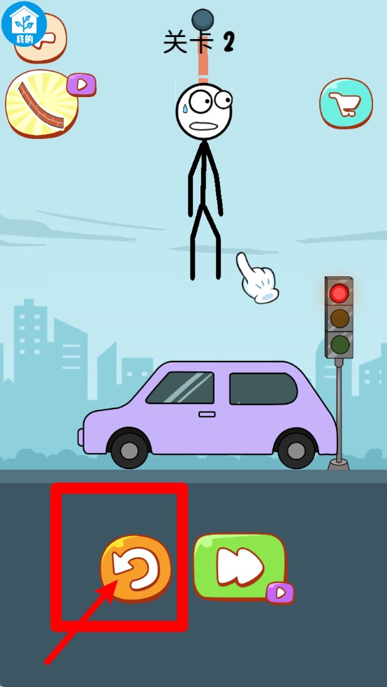 2. 如果当前角色悬停在空中,可以通过点击左下角的橙色“重试”按钮来重新开始这一关卡的挑战。
