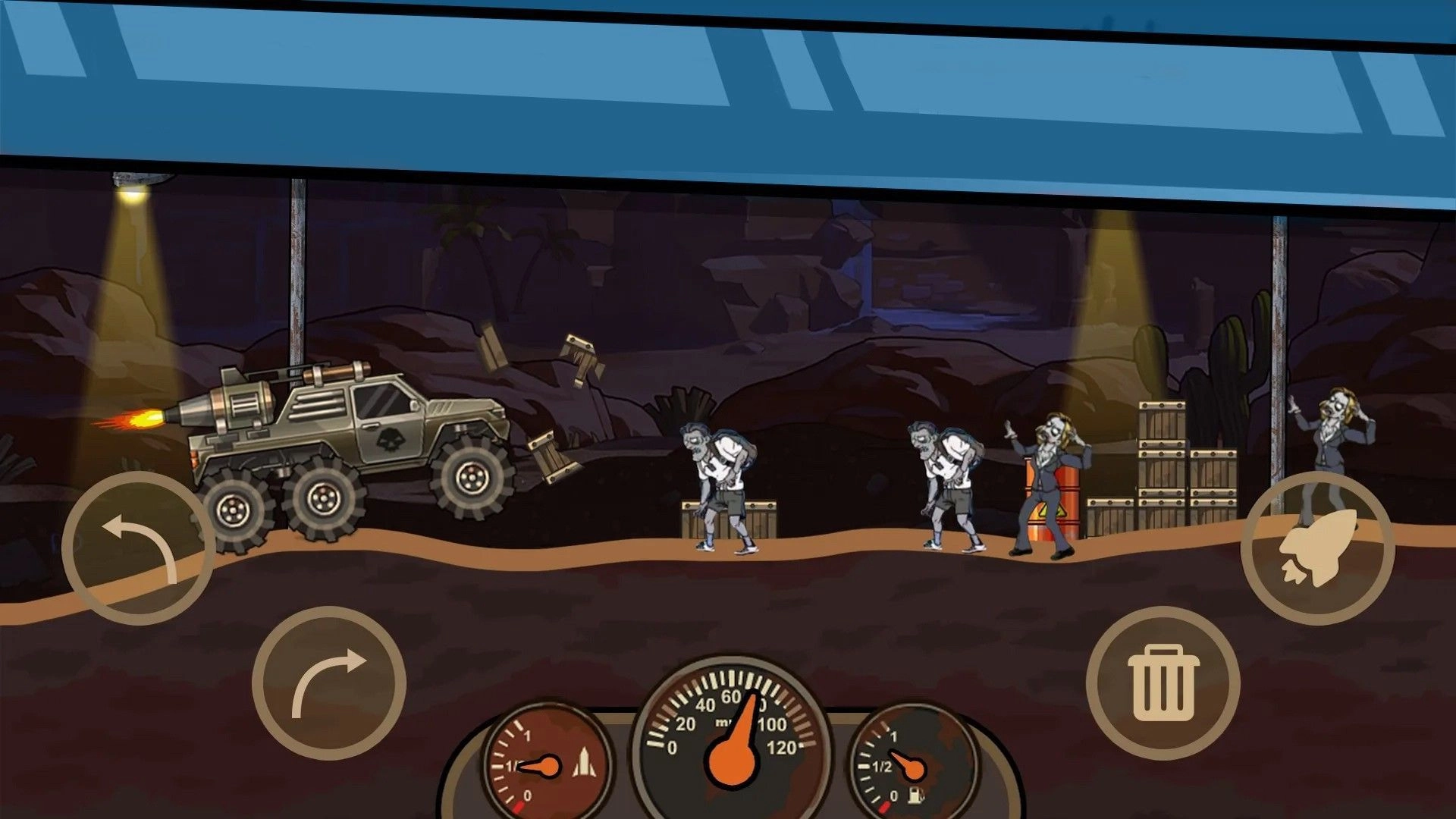 在这款游戏中,玩家能够自由驾驭改装后的汽车,开启刺激的冒险之旅。仅需轻松操控车辆行驶特定距离,就能赚取金币,用于升级与强化自己的座驾。与此同时,玩家还得持续应对沿途遭遇的各类僵尸,尽情体验精彩纷呈的赛车竞速挑战与比赛。