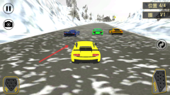 2、用虚拟按键控方向、油门,避对手车,在雪地弯道超车,冲过终点。