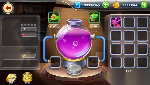 1. 进入游戏,操控合成机器挑选两只小怪物进行合成,依据素材怪物的属性生成新怪物,以此为塔防战斗储备战力。