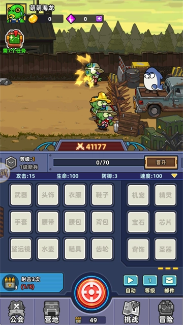 1. 踏入小鱼快跑的世界,从基础装备开始,通过挂机射击靠近的僵尸,收集掉落的物资和装备,开启末世生存的首个阶段挑战。
