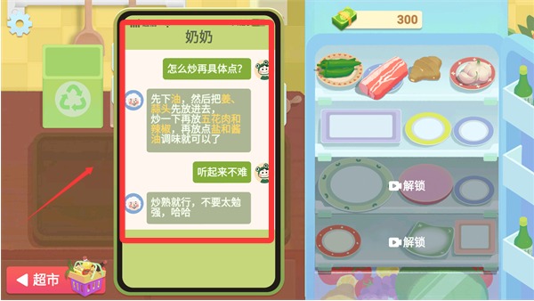 2、冰箱功能允许你前往市场采购新鲜食材并自由组合,用不同搭配探索独特口味,让每次做菜都带来新鲜感。