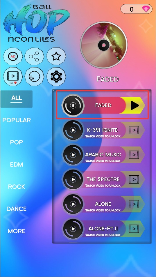 1进入游戏后选择你喜欢的背景音乐,点击播放按钮就可以开始挑战了。不同的音乐风格会带来独特的节奏闯关体验。