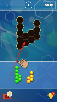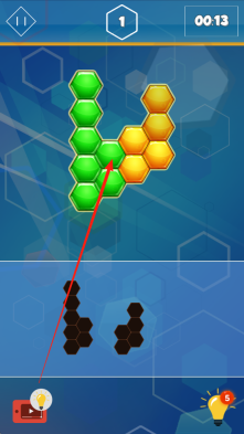 1、基础操作系统:通过点击屏幕选取六边形方块,滑动屏幕来改变移动方向,长按屏幕可以激活旋转功能。这些操作简单易懂,让玩家能够专注于策略规划,完成复杂的拼接任务。