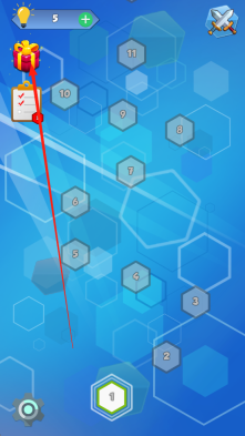 1、视觉几何世界:简洁清新的场景搭配六边形设计,精致的光影效果与华丽的合并特效,伴随关卡变换的背景音乐,共同营造出一个充满逻辑美感的几何空间。