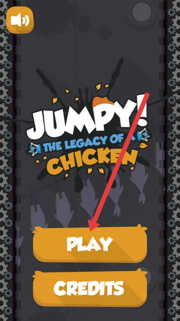 1点击【PLAY】,进入“Jumpy!-The-Legacy-of-a-Chicken”,控制小鸡开始跳跃冒险,避开蓝色电击障碍。