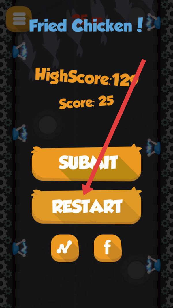 3、在结算界面,如果你想重新游戏以提高分数(当前分数:25),请点击【RESTART】按钮,再次开始小鸡跳跃挑战,争取打破更高的记录。