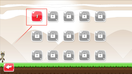 1、在关卡选择界面点击红色框标注的"1"号初始关卡,灰色锁定的后续关卡需要先完成前面的挑战才能解锁,左下角的角色形象会随着进度发生变化。