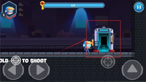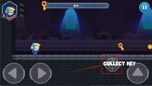 1在开始的场景里,控制角色向左侧前进,留意收集被红框标注的黄色钥匙。屏幕顶部会显示"0/1",意味着你还需要拿到一把钥匙。同时要注意绕过障碍物,保证角色的安全。